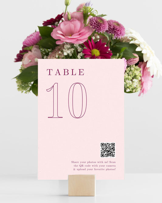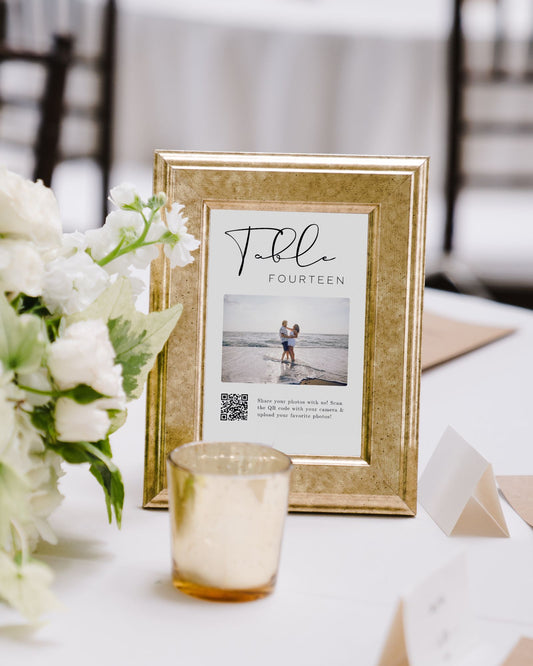 Interactive Wedding Photo QR Code Sign with Table Number