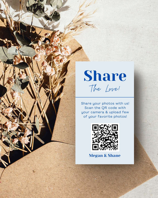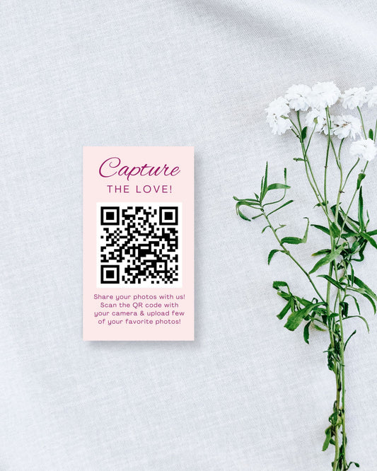 Celebrate & Capture: Wedding Guests Photo Sharing QR Code Take Away Business Card