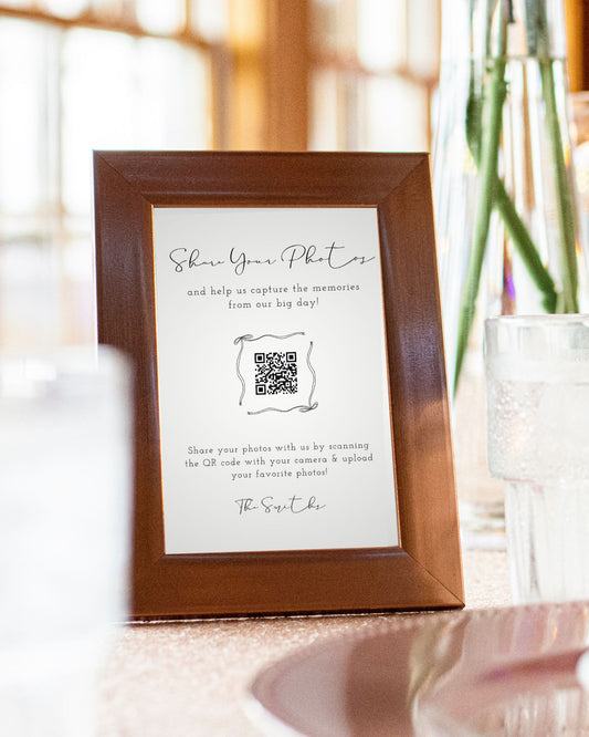 Modern QR Code Wedding Sign for Photo Sharing - Share Your Photos