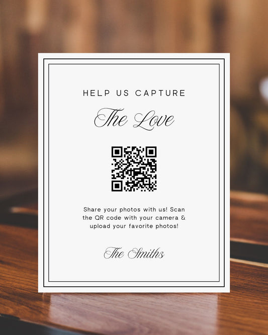 Interactive Wedding Photo Collection QR Code Sign - Capture the Love
